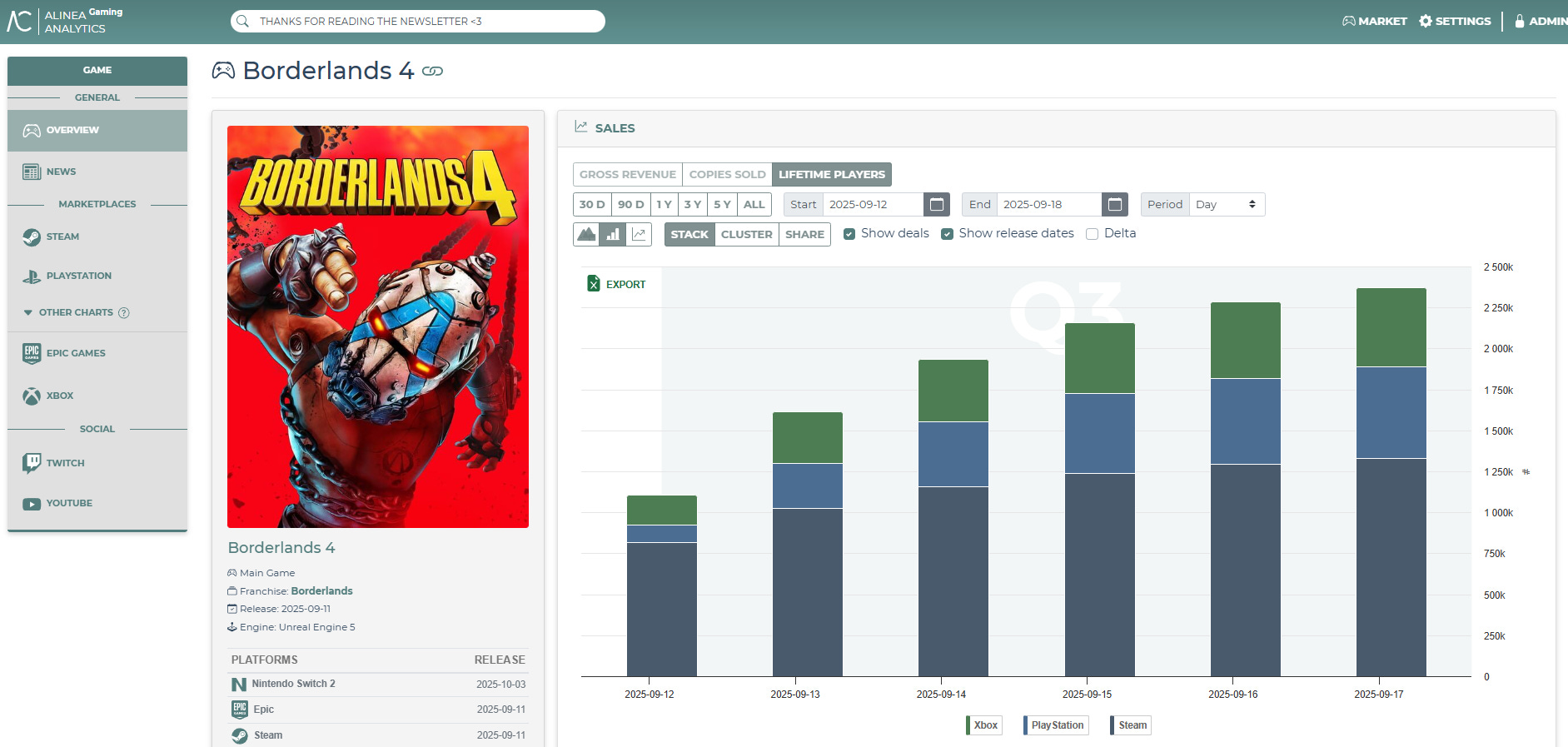 Borderlands 4 deep dive: 2.5M+ players and $150M+ revenues