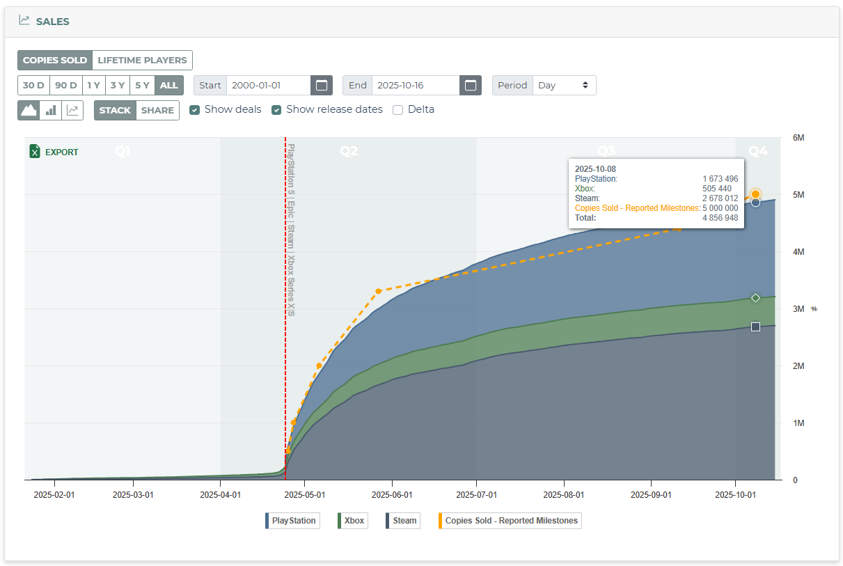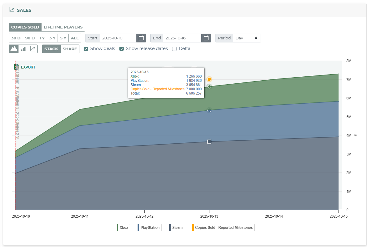 Today, EA announced the game sold 7 million copies across all platforms, including the EA App, in three days. There’ve been four other notable publisher-published numbers this month, so we’ll show you how we fared there too (at the end of the newsletter).