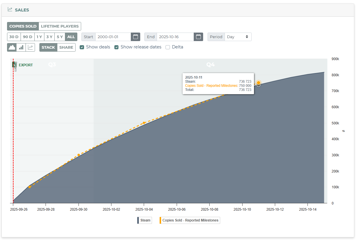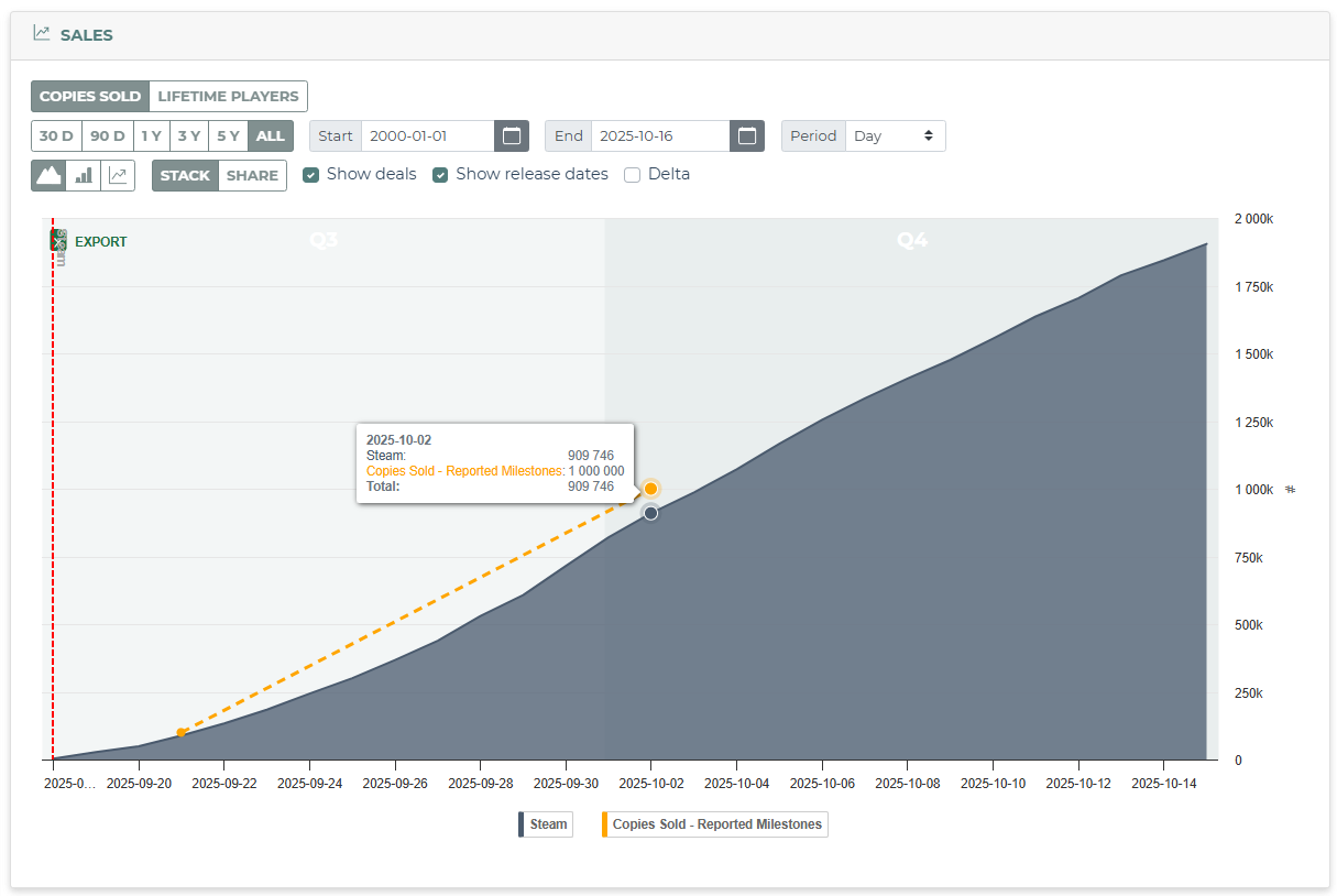 As you can see, Megabonk is nearing 2M sold on Steam, as per our estimates. It’ll pass that tomorrow or over the weekend.