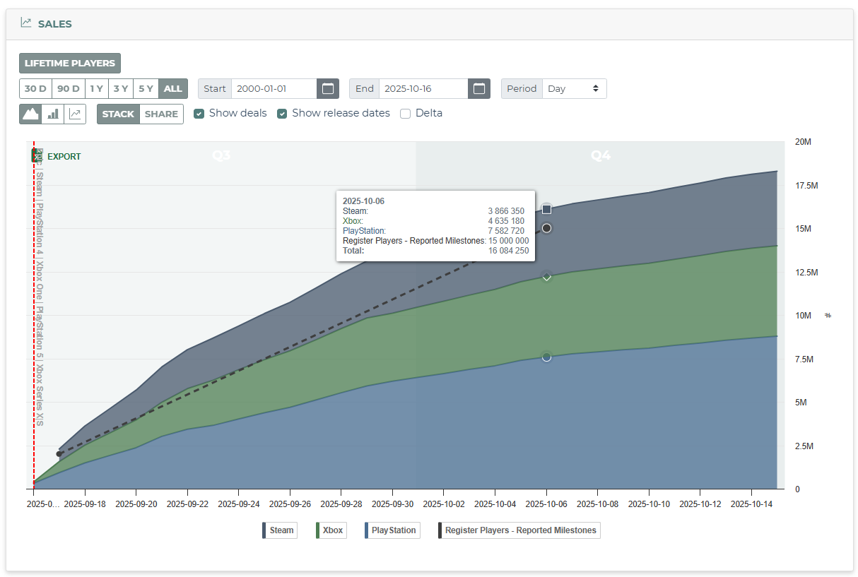 But yes, Battlefield is SMASHING it. Yet a different shooter has had way more wishlists than BF6 all this time.