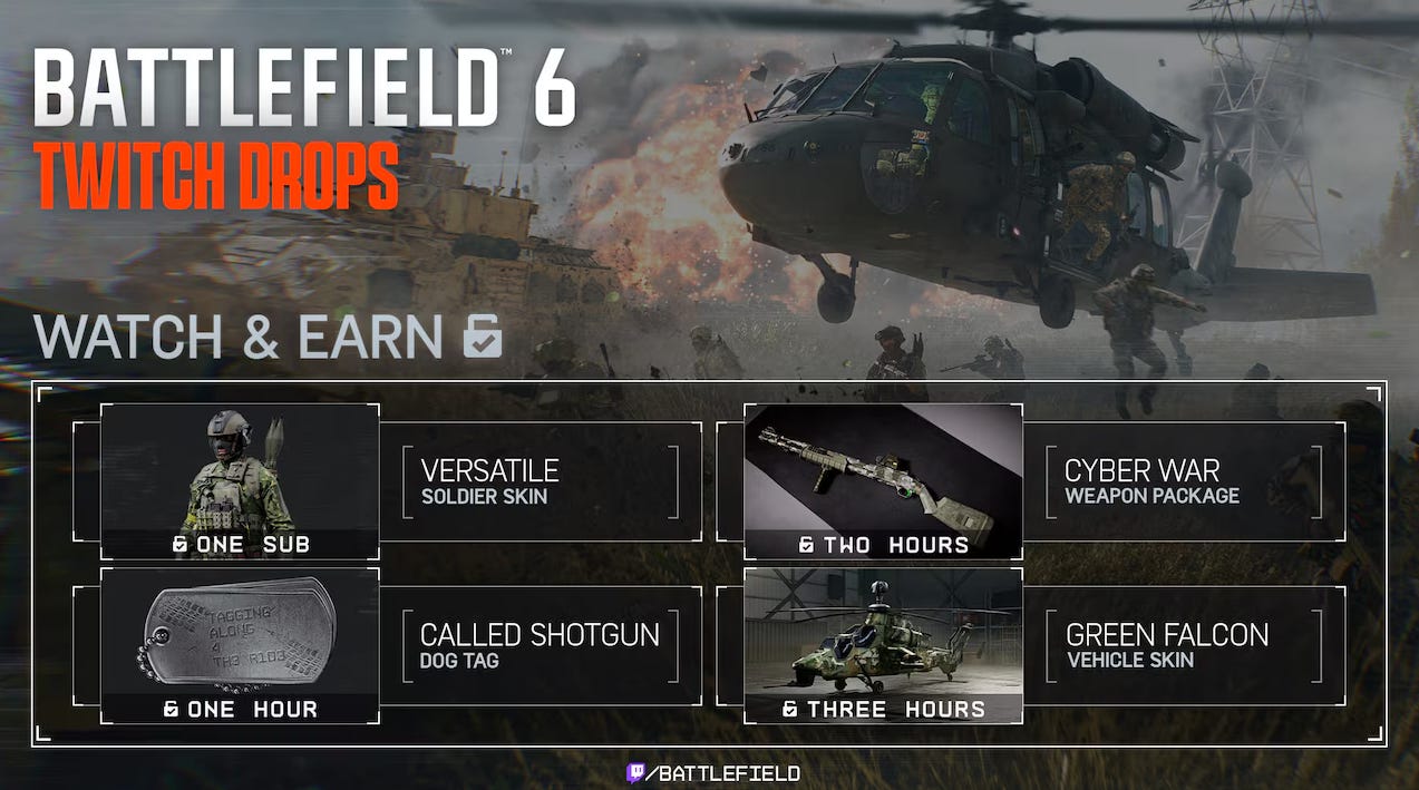 Beyond sales, EA is running an extensive Twitch Drops campaign to amplify launch-week engagement. Running from October 10 through October 17, players can earn cosmetic rewards for engaging with Battlefield streams.