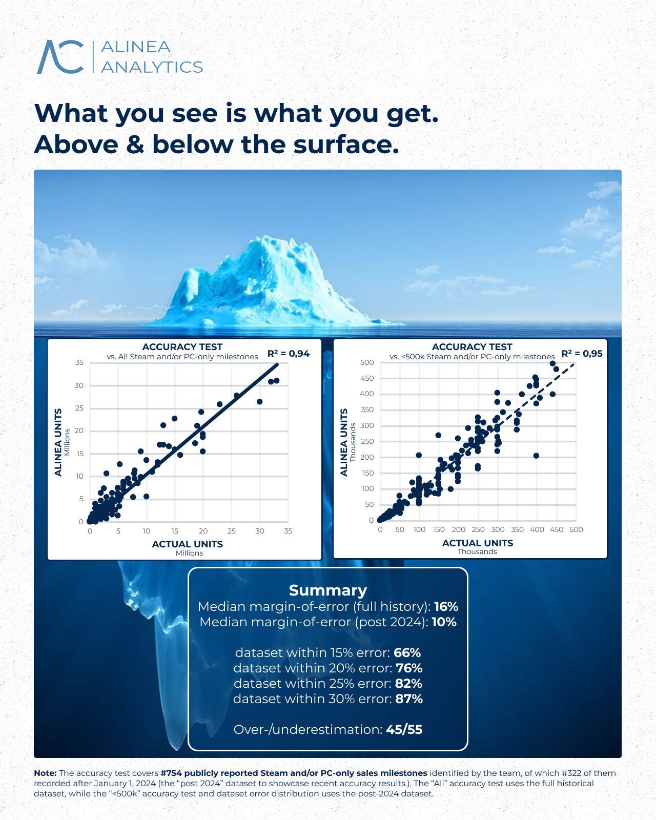 [Alinea Analytics boasts the most accurate PC and console estimates in the business. Game makers use our platform to understand their audience, keep an eye on the competition, monitor sales trends, and spot new opportunities. We equip game studios and financial institutions with accurate data and the confidence to make smarter, data-driven decisions. Want to talk about all things games market data? We’d love to chat!]