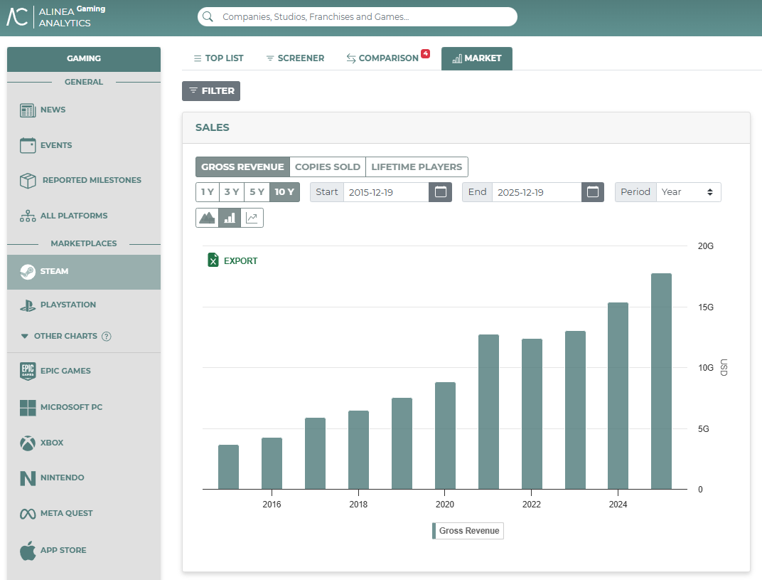 Here’s a screenshot from our platform showing that Steam has already generated revenues of $17.7 billion this year: